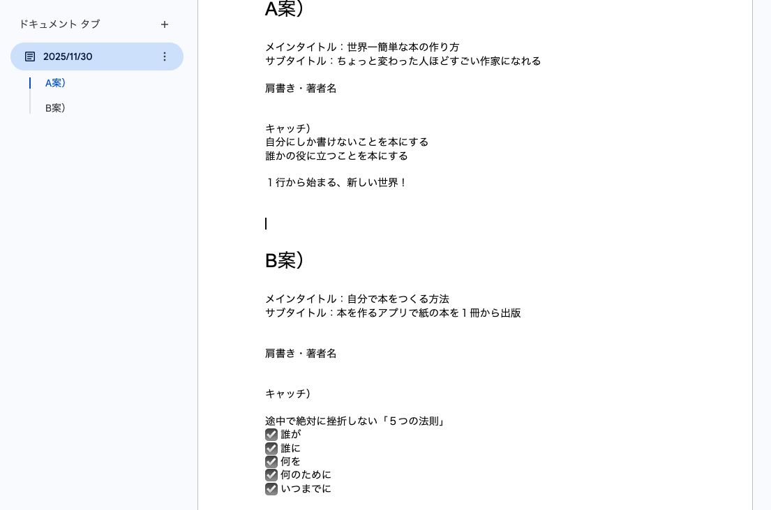 構成案と同様に、Googleドキュメントにて共有